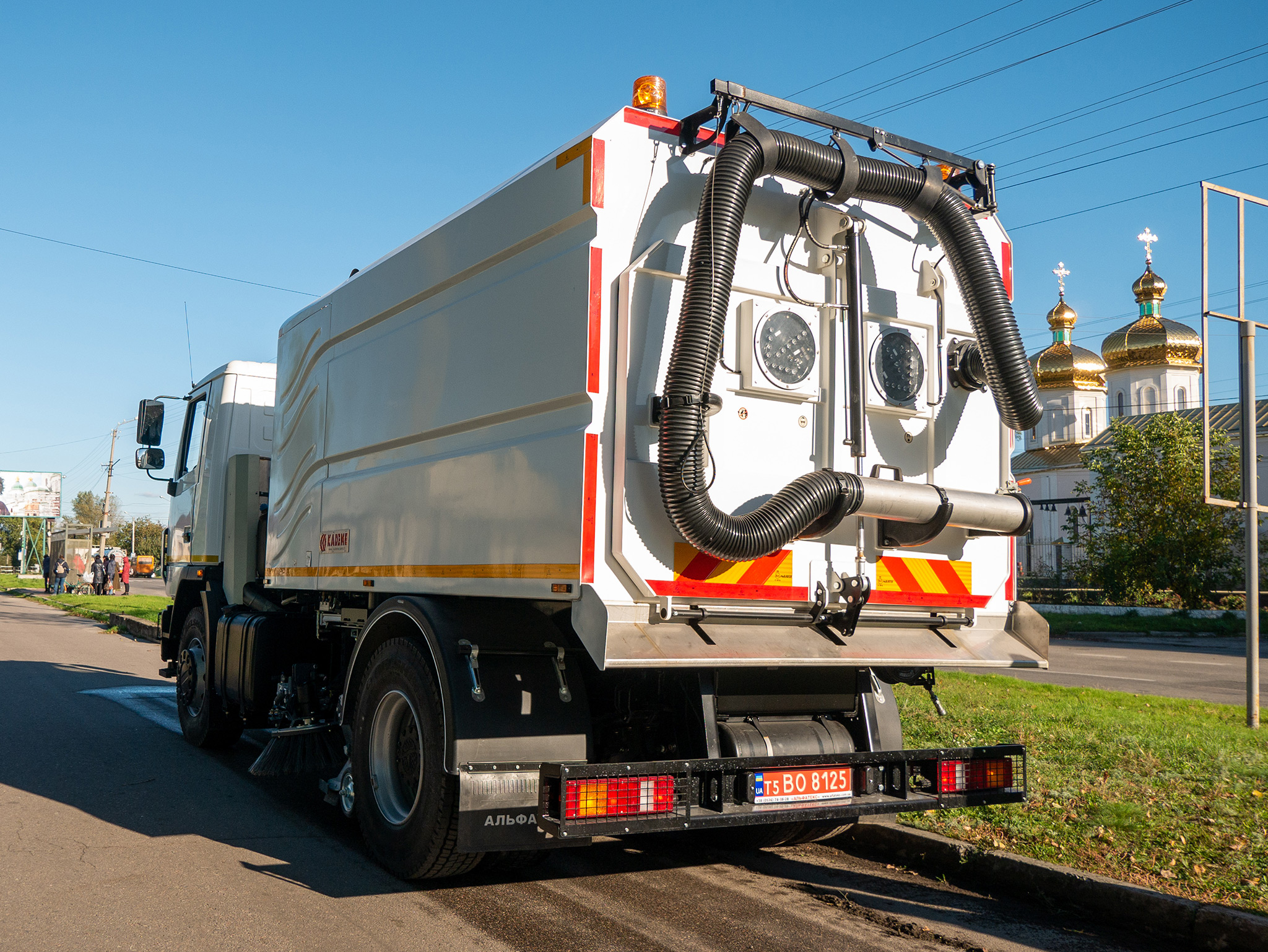 На вулицях Сміли Черкаської області працює дорожній пилосос, розроблений Кременчуцьким заводом комунальної техніки Альфатекс.