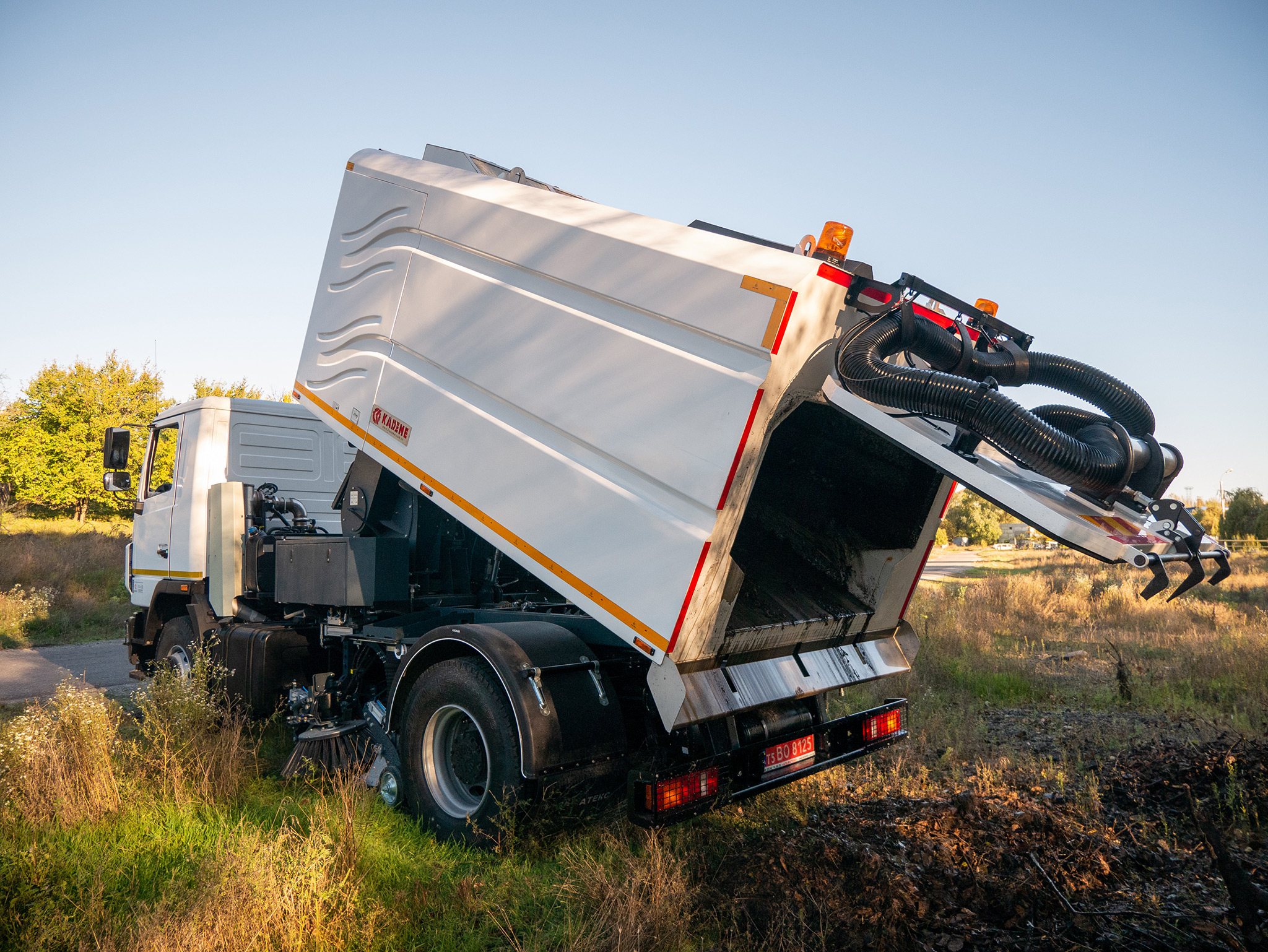 Пилосос має три щітки: дві бокові та центральну. В задній частині він обладнаний всмоктуючим шлангом для прибирання опалого листя та іншого сміття. Крім того, пилосос має високоефективну систему мийки під високим тиском. Її можна використовувати для мийки зупинок і доріг.