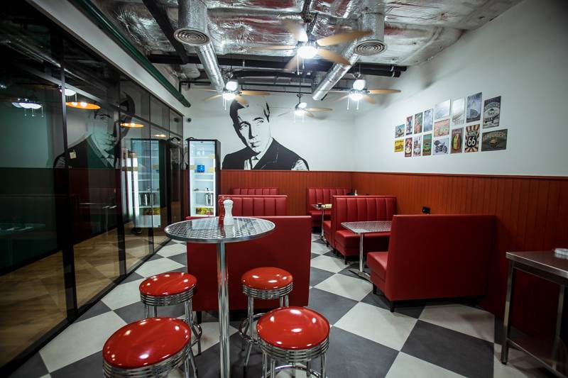 Інтер'єр виконаний у стилі арт-деко — він відтворює атмосферу Нью-Йорка 40-50-х років. У лаунж-зоні встановлені дивани зі шкіряною та тканинною оббивкою, масивні крісла, барна стійка. Також тут є джук-бокс — пісенний автомат у ретро-стилістиці.