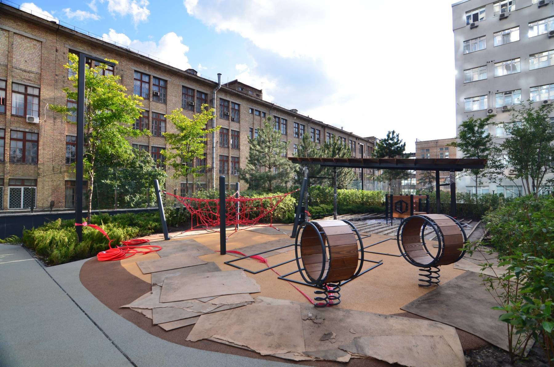 У Києві на території житлового комплексу Tetris Hall облаштували зелену зону з дитячим майданчиком, яка розташовується на даху паркінгу. Про це пише портал «Шотам», посилаючись на засновника Студії ландшафтної архітектури Kotsiuba Максима Коцюбу.