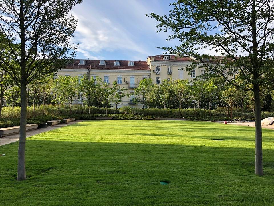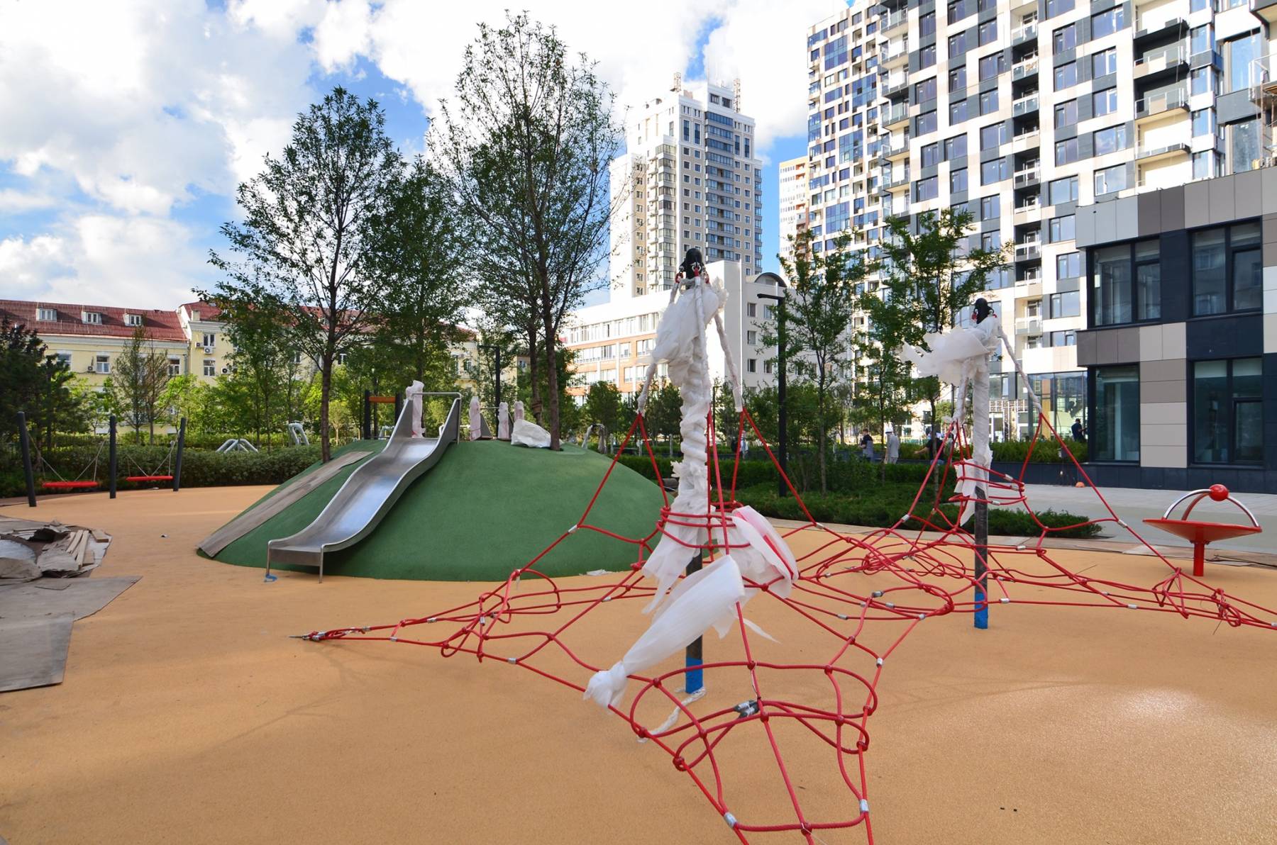 Парк облаштовують як закритий публічний простір для мешканців житлового комплексу. Дизайнери передбачили, що в ньому буде простір для зустрічей, дитячий сад, газонна галявина та спортивний майданчик.