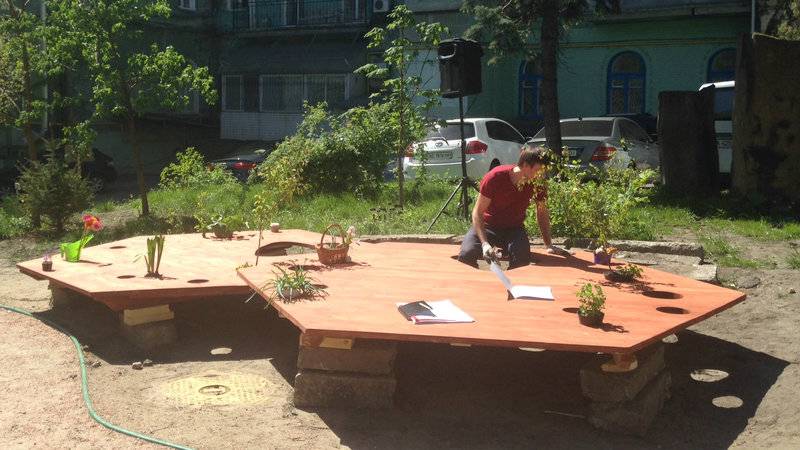 Сегодня, 29 апреля, в Киеве презентовали конструкцию для двориков, которая должна стать местом общения соседей.