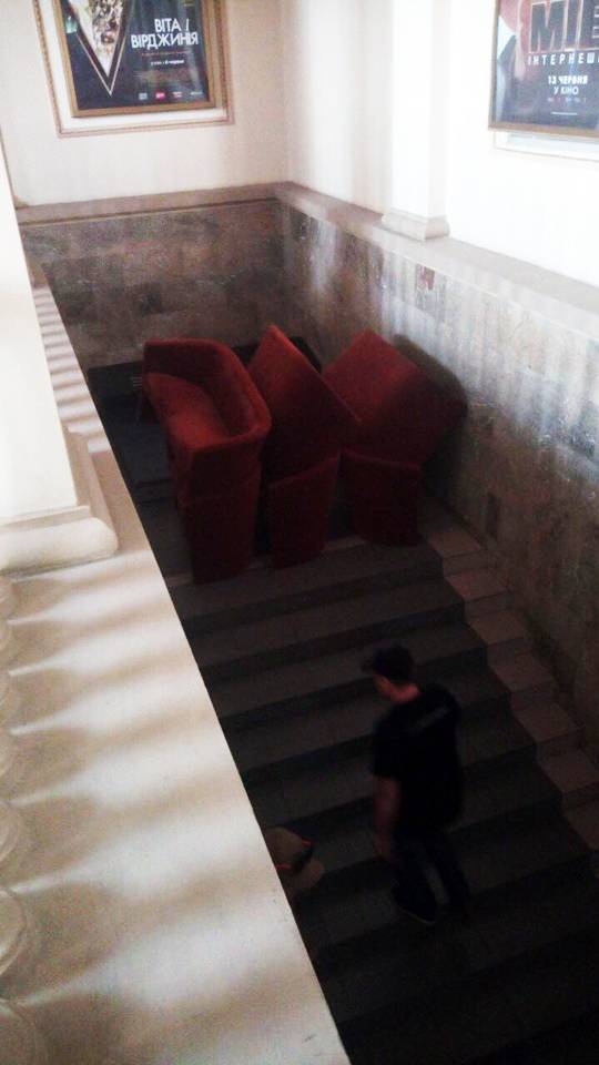 Організатор фестивалю KyivMusicFilm Кирило Марікуца повідомив, що представники так званої комісії, яка проникла в кінотеатр нібито для інвентаризації, почали поливати приміщення з пожежних гідрантів.