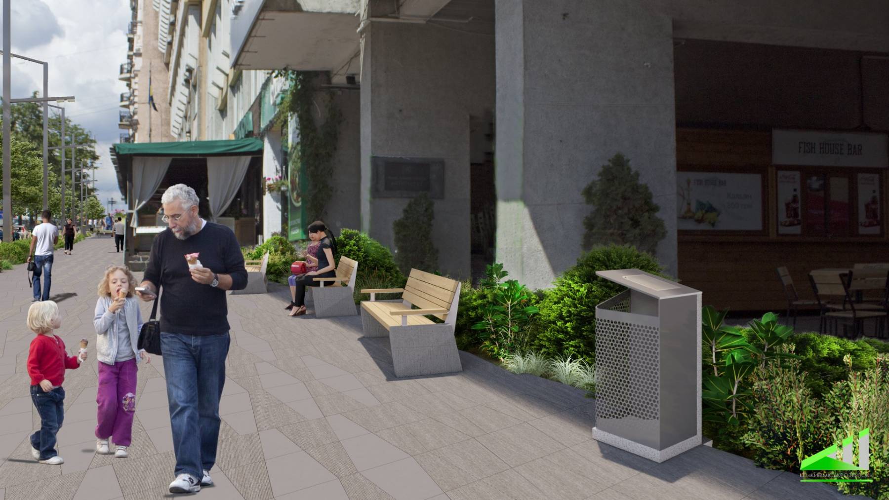 На знімках можна побачити велодоріжки по обидва боки вулиці, додаткове озеленення, місця для відпочинку.