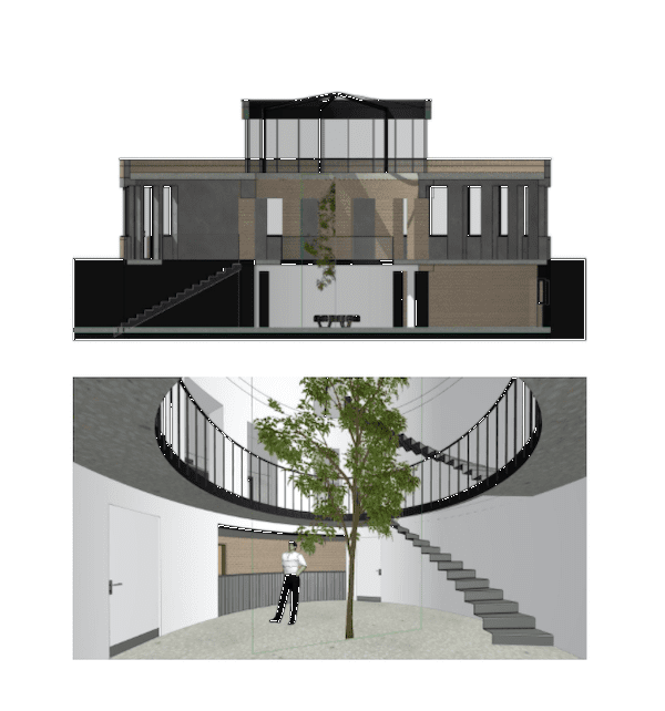 На першому поверсі будівлі збираються вирізати великий отвір, щоб підвальний поверх перетворився на світлопропускний атріум. Висота стель у центрі сягатиме понад 10 метрів.