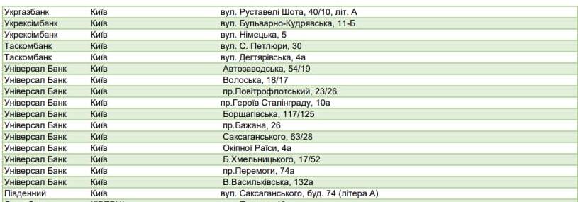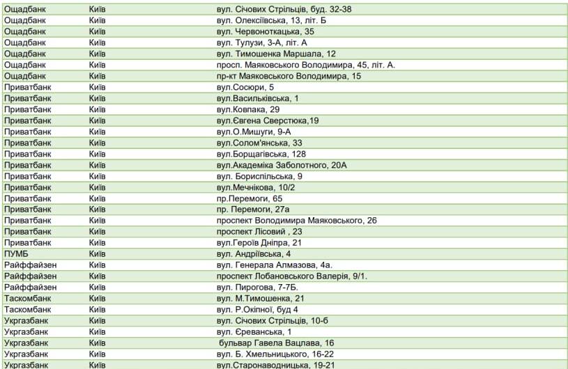 Банки Києва, що працюватимуть за відсутності світла: