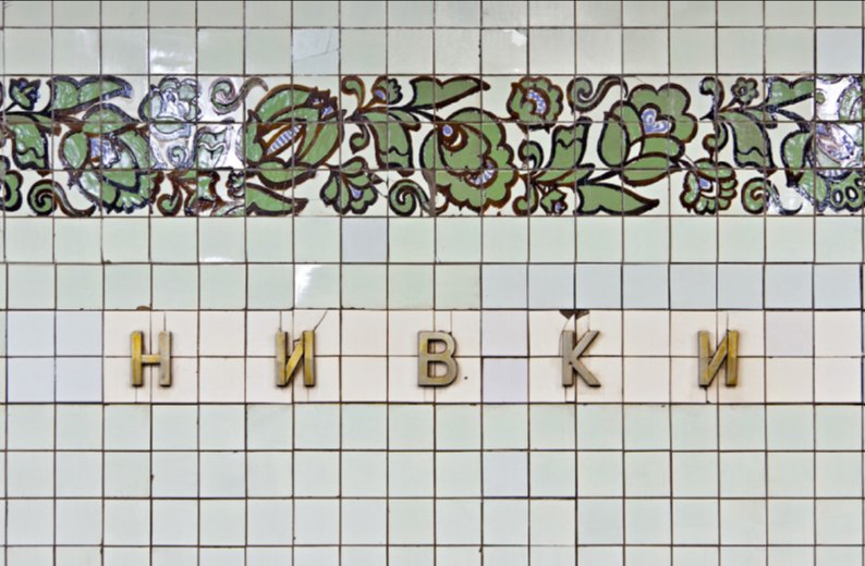 Цей шрифт із широкими літерами, популярними в 70-х, став візитівкою синьої гілки київського метро. Наразі його можна побачити на станціях Олімпійській, Тараса Шевченка, Героїв Дніпра та Мінській.