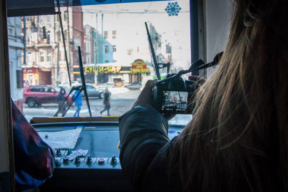 Зазвичай ми просто приїжджаємо на кінцеву і там намагаємося домовитися. Деякі водії трамваїв кажуть: «Вам треба отримати дозвіл на зйомку у керівництва», але ті, хто любить свою роботу, погоджуються без проблем.