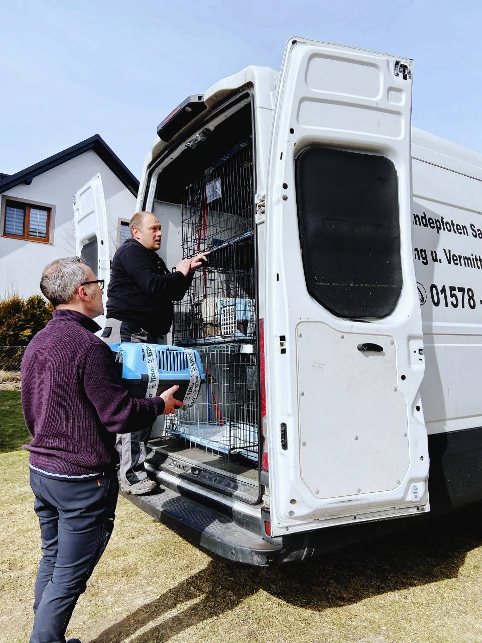 Вже в Німеччині нас перепакували в іншу машину (близько 250 кілограмів котиків), а потім за 2 рази ми перевезли всіх тварин в будинок, в якому ми зупинилися. Котів оглянули місцеві ветеринари, зробили необхідні щеплення тим, у кого вже вийшов термін вакцинації, перевірили чіпи і документи.