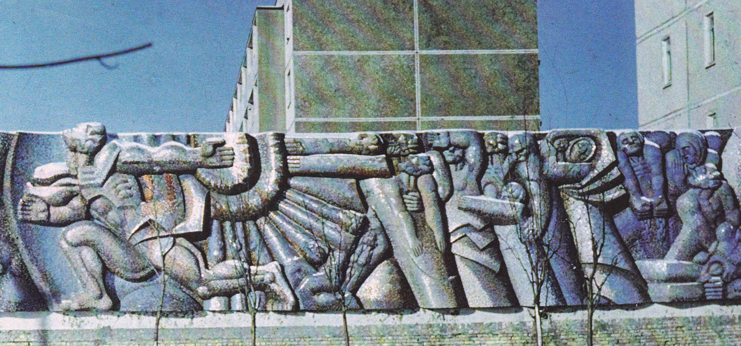 Пам’ятаю, коли тато з виконавцями працювали над «Музикою», це було літо. Стояли риштування, метал, відблиски цих скоб, і страшенна спека. Вони піднімали відро з водою нагору, щоб облитися, а вода вже була як окріп — настільки все нагрівалося. Метал на рельєфі рефлексував, сліпив очі, ніби дзеркало. Спека була нестерпна, але батько працював.