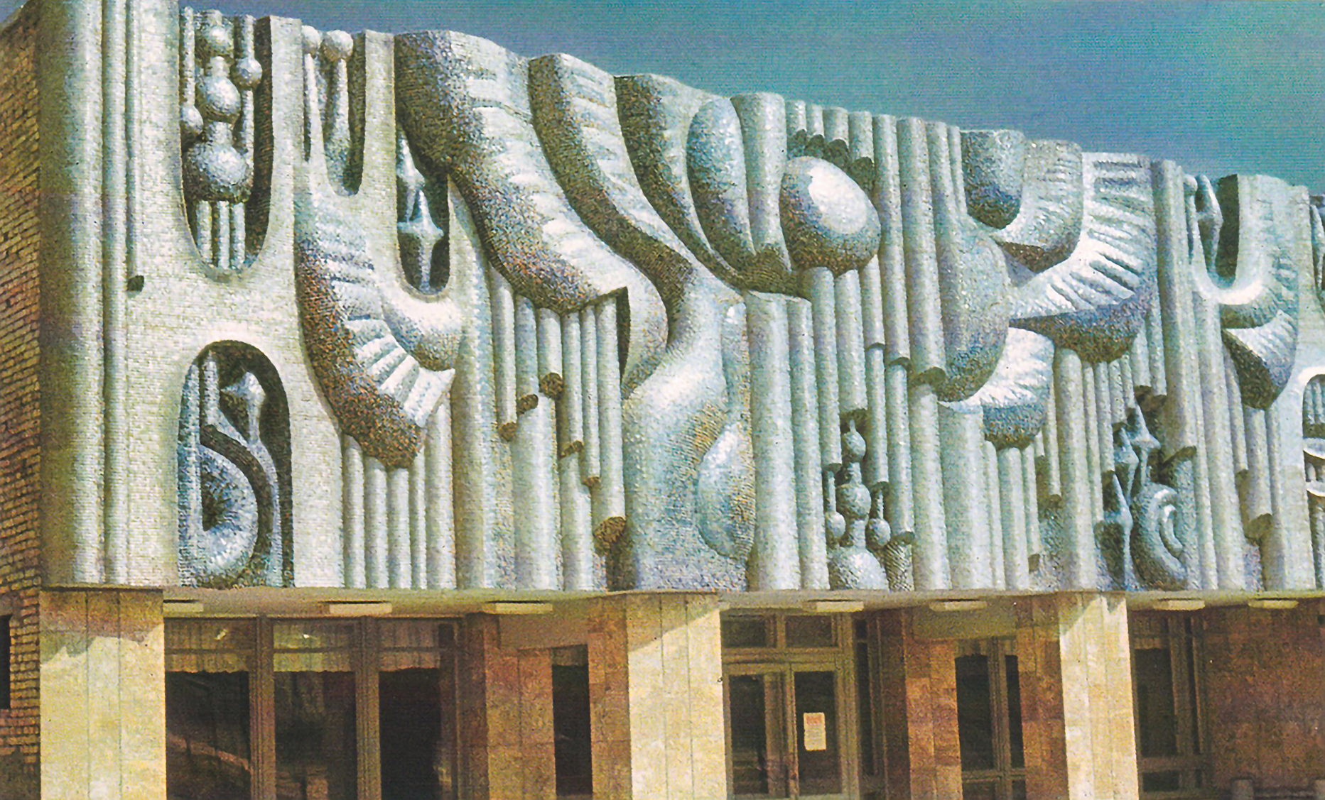 Першою стала мозаїка «Енергія» на кінотеатрі «Прометей», яку тато завершив 1975 року. У центрі — великий пульсуючий атом як символ міста атомників. Друга — «Музика» 1976 року, на фасаді музичної школи. Її вертикалі нагадують органні труби, між якими з’являються крила — образ окриленості, творчого підйому. Тато взагалі любив мотив крил і піднесення. Це відчувалося і в самій пластиці: форми тягнуться вгору, ніби звучать. У першому ескізі це було особливо виразно — глибина, рух, підйом.