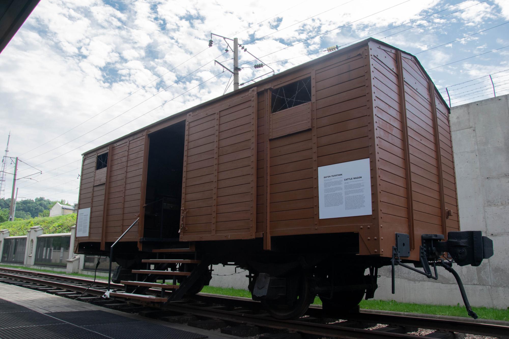 Біля входу до музею стоїть вагон-телятник. У подібних депортували людей. Основою вагона є оригінальна конструкція, виготовлена в 1951 році в Німеччині.