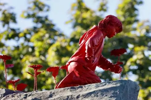Французький художник з Тулузи Джеймс Коломіна до Дня Незалежності України подарував скульптуру "Дівчинка з соняшниками". Її встановили на порожньому постаменті, де колись стояв памʼятник члену партії більшовиків Миколі Щорсу.