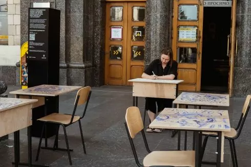 На вулицях Києва з’явилися шкільні парти із закликом донатити на укриття для школярів у селах в рамках ініціативи "Захисток: Безпечна освіта".