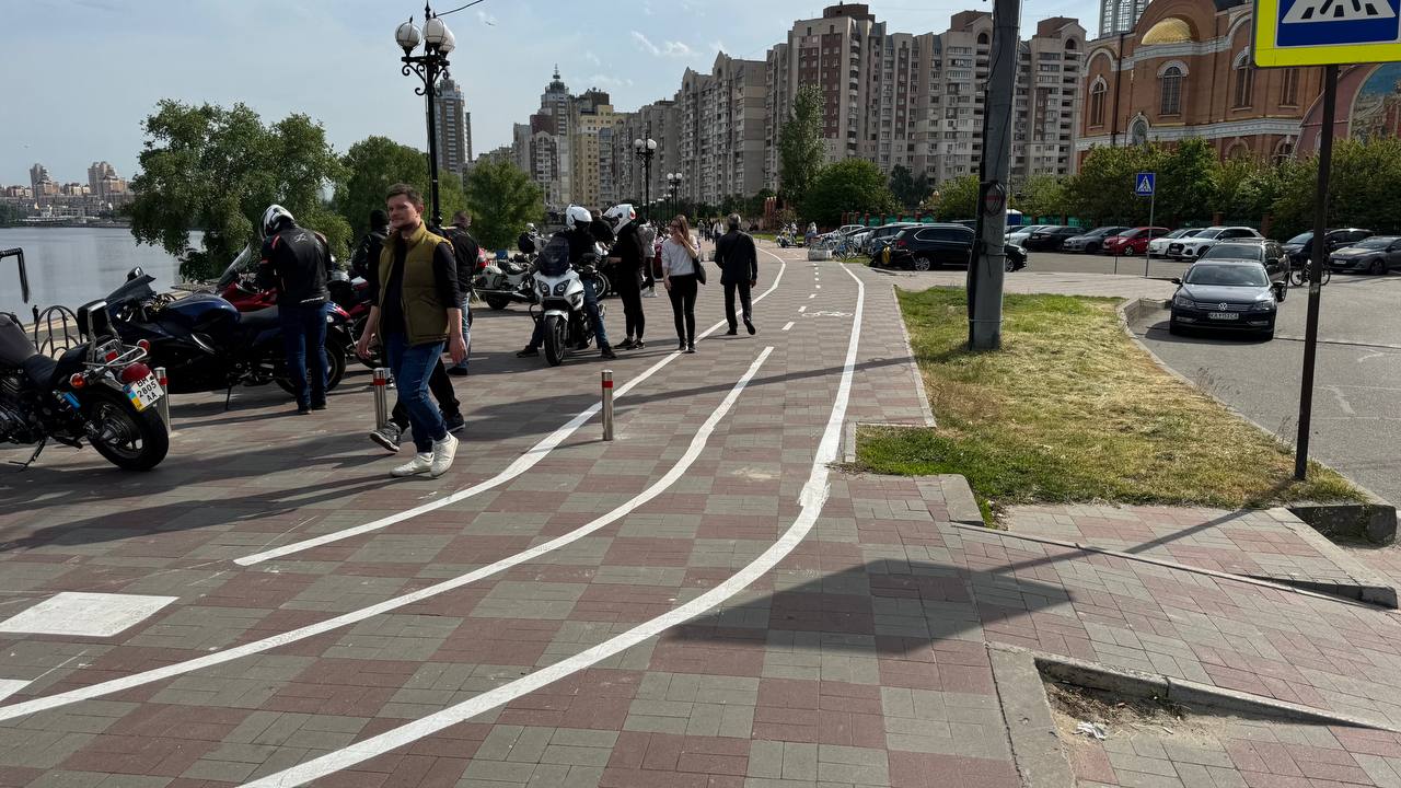 На Оболонській набережній невідомі нанесли розмітку велодоріжок, які можуть провокувати конфлікти між пішоходами і велосипедистами.