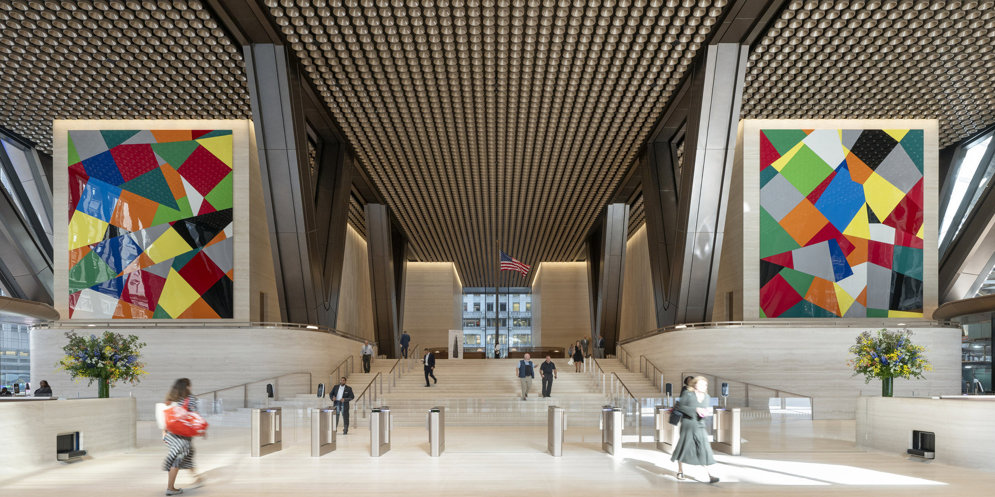 Головний вхід веде до двоповерхового вестибюля. Вище розташовані вісім поверхів торговельних залів — операційне ядро JPMorganChase, а також простір для зустрічей і подій.