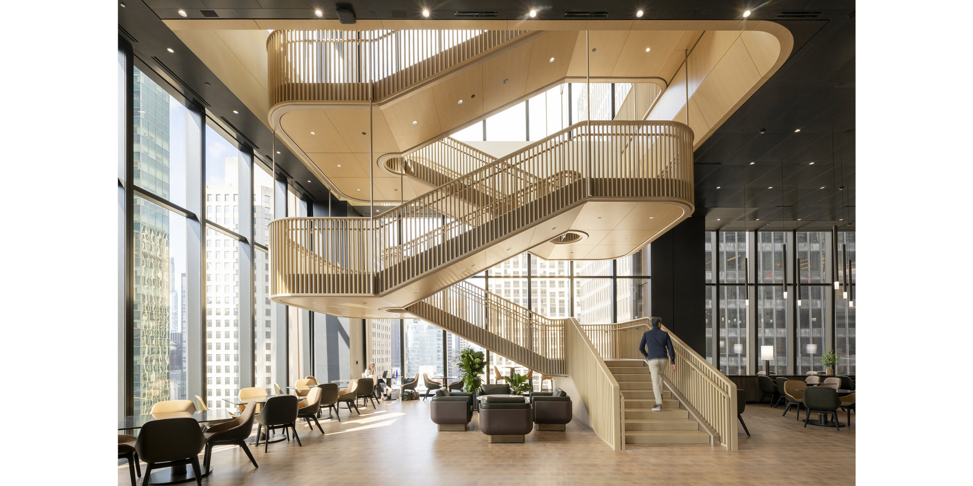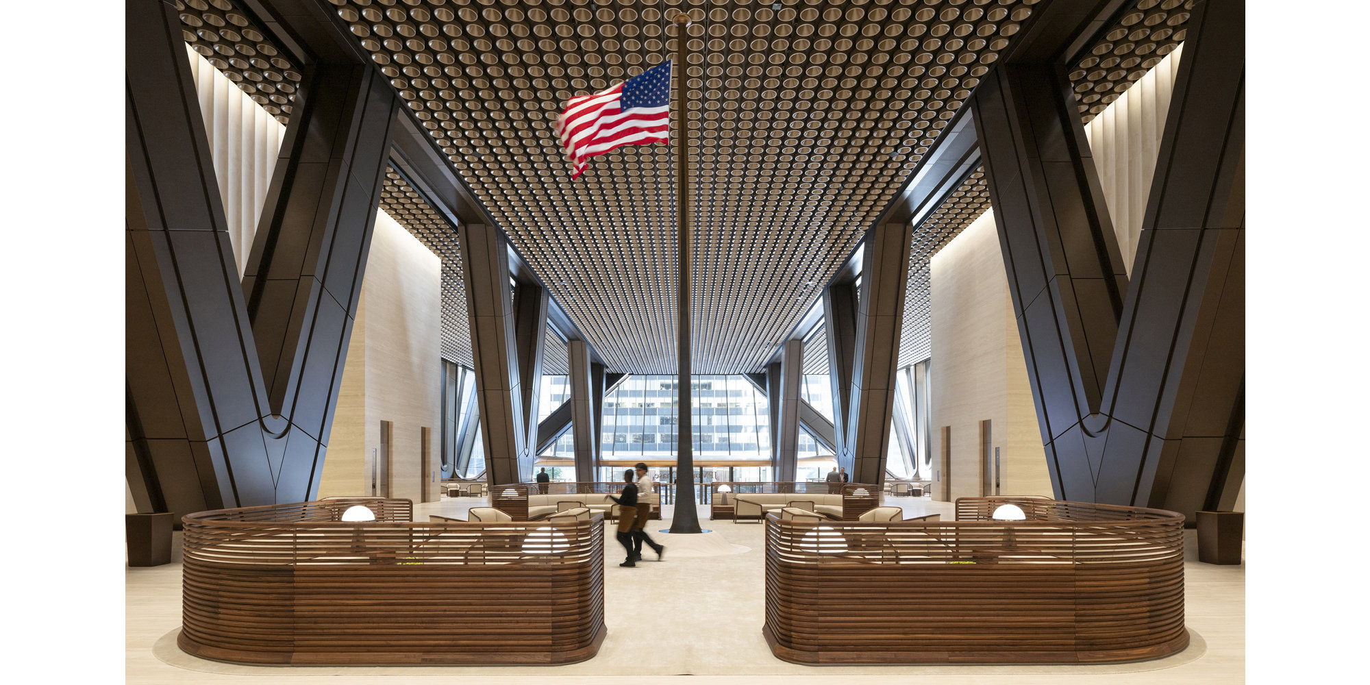 Інтер’єри площею понад 1,7 мільйона квадратних футів спроєктувала студія Gensler. Усередині — офісні поверхи, зони відпочинку, фітнес-простори та клієнтські центри. Робочі місця згруповані в команди, є спеціальні зони для відеозв’язку та двоповерхові кафе, які поєднують сусідні поверхи в спільноти.