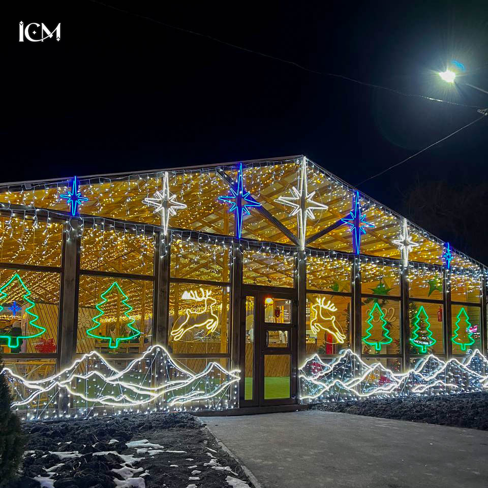 Посеред ковзанки розташована 14-метрова ялинка. Локація прикрашена ілюмінаціями. Працює кафетерій та фудкорт. Також на території облаштували льодову гірку та фотозони.