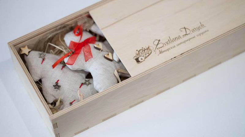 Також є металеві прикраси на ялинку. Всі набори упаковані в дерев'яні коробочки.