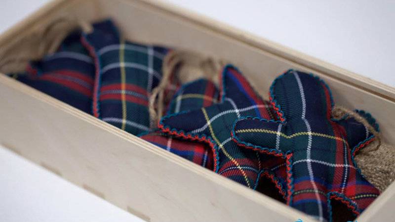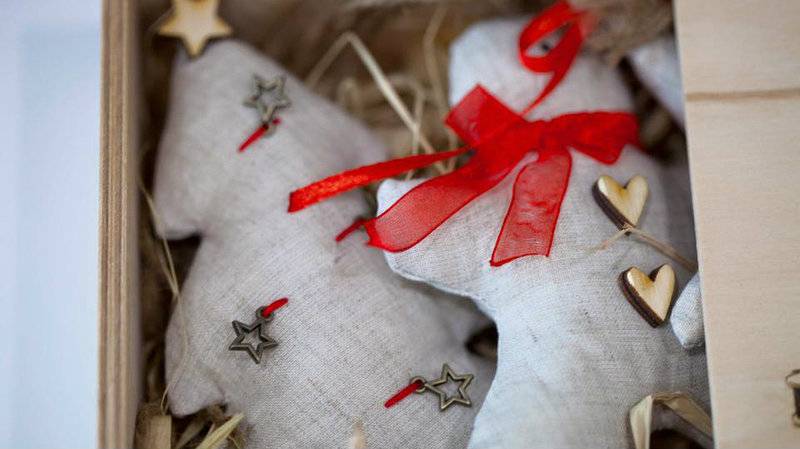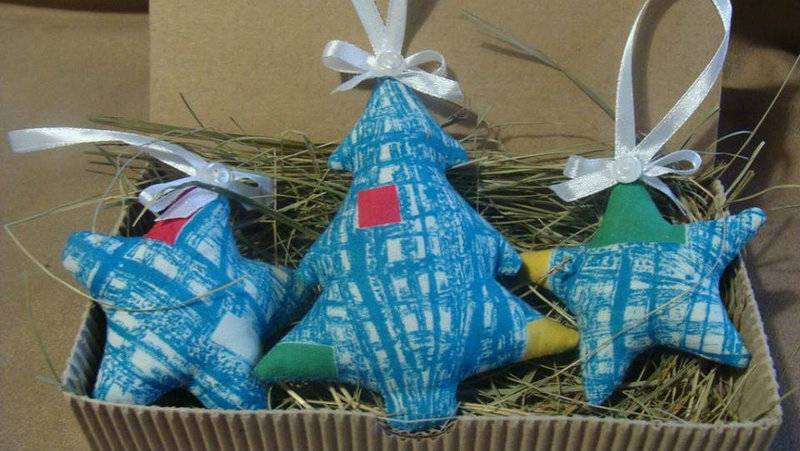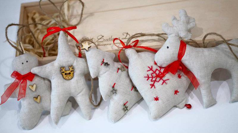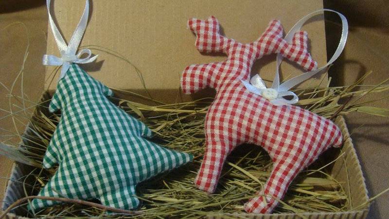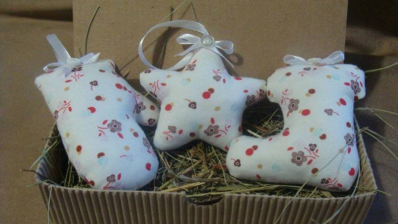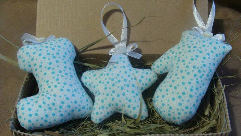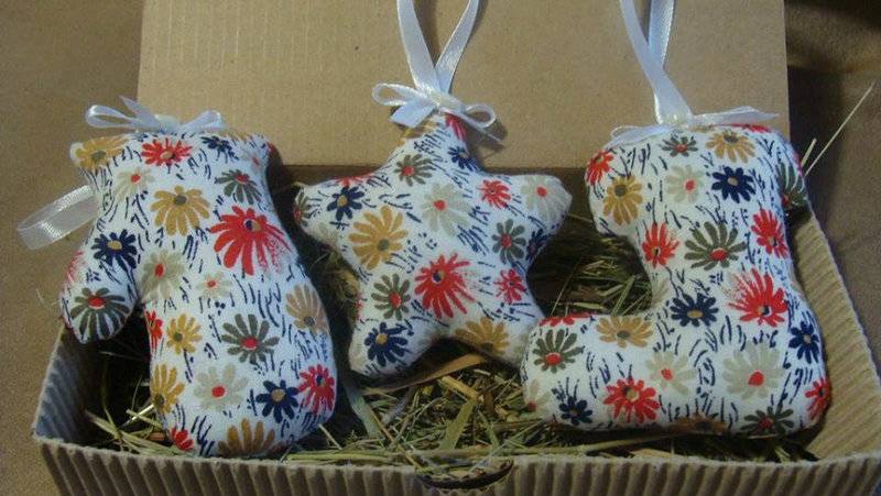 Творча майстерня пропонує набори м'яких іграшок на ялинку. Є олені, дзвіночки, зірки з тканини милих забарвлень – в горошок, смужку і клітинку.