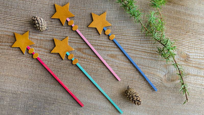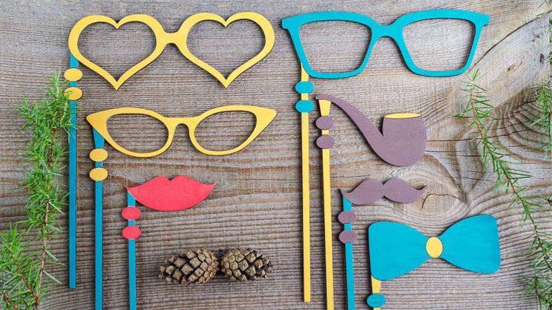 З веселого – дерев'яний сет для новорічного карнавалу (різнокольорові бороди, окуляри, метелики) і набір чарівних паличок.