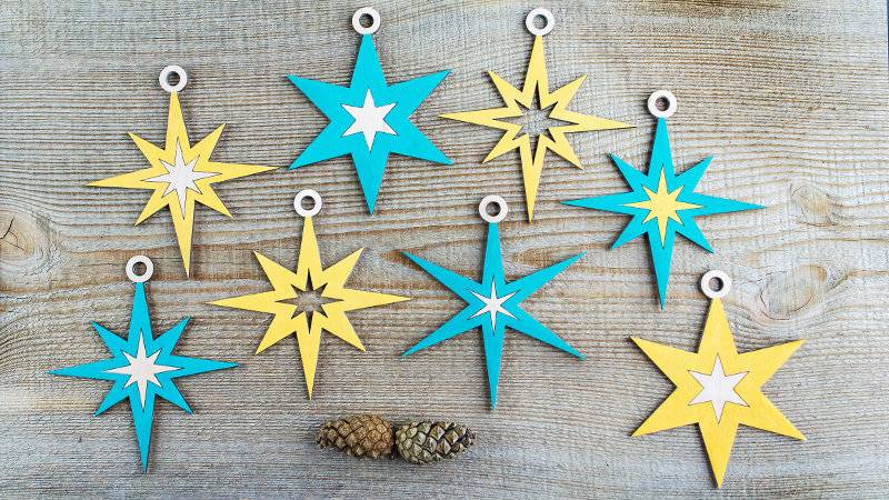 Майстерня пропонує прикрасити ялинку ретро-іграшками з дерева. В асортименті – підвіски у вигляді ракет, дельфінів, сніговиків, рукавиць, сердечок і навіть Лускунчика.