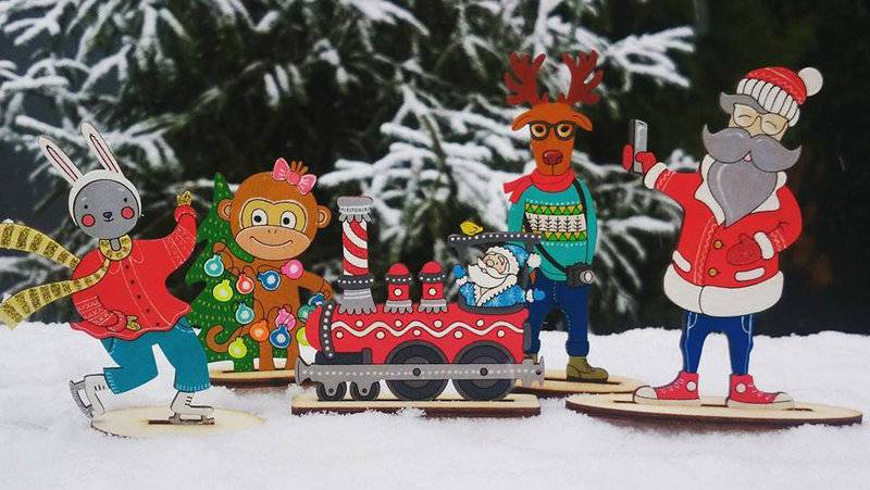 Ці виробники пропонують іграшки з фанери. Є фігурки Святих Миколаїв, мавп і оленів, а також різдвяні будиночки.