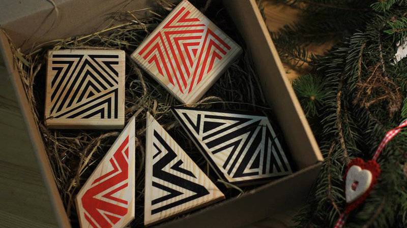 Ще одна львівська майстерня, цього разу – з виготовлення дитячих дерев'яних іграшок. Їхні новорічні підвіски на ялинку можна купити як окремо, так і в наборах. Всі виготовлені зі шліфованої фанери, пофарбовані водною фарбою. Упаковані в святкові дерев'яні коробки.