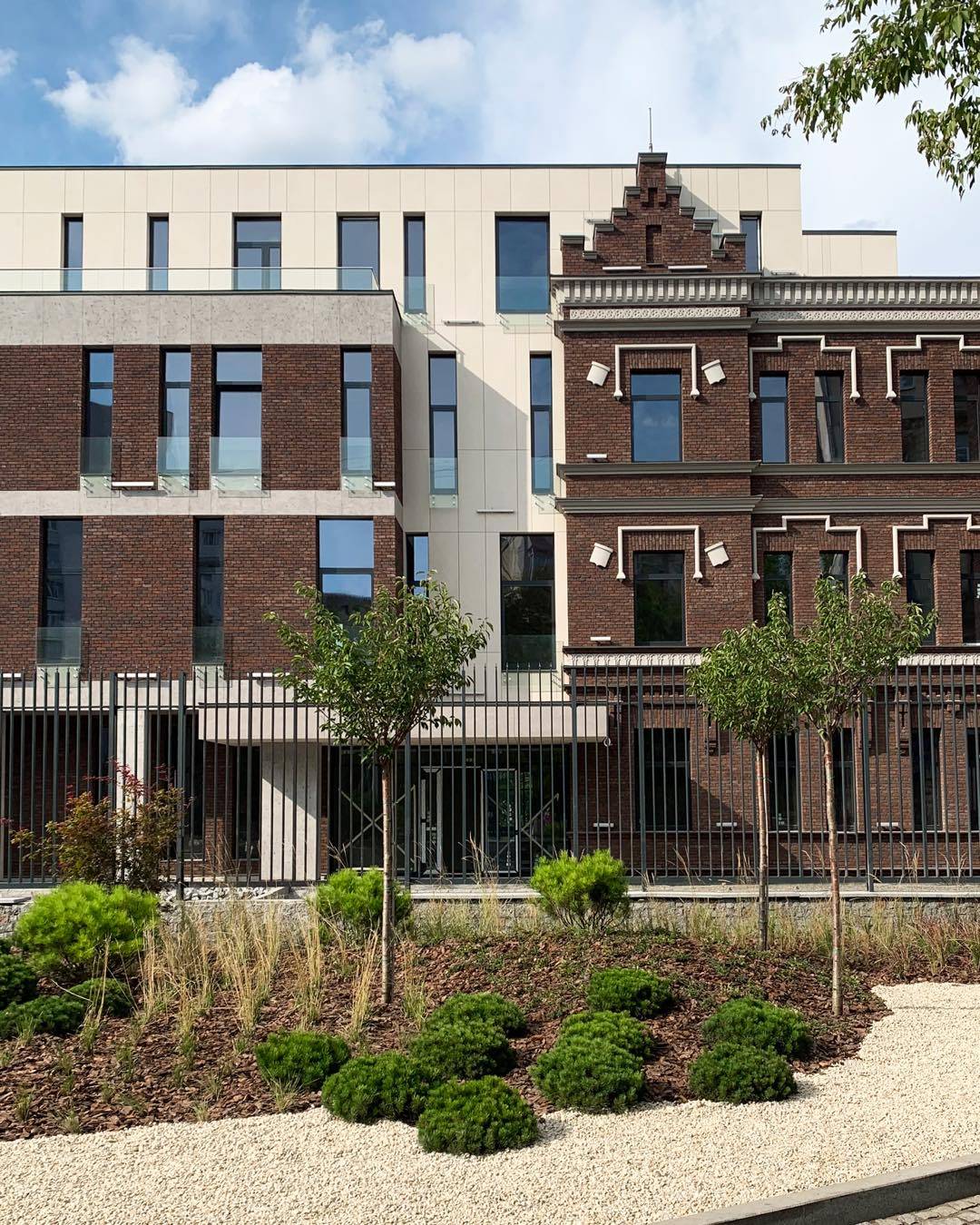 Архітектори зберегли оригінальні стіни, їх укріпили та утеплили мінватою. Цеглу на фасаді дореволюційної будівлі відновили за технологією ручної формовки. Це дало змогу виготовити цегляні декоративні елементи фасаду за оригінальними кресленнями.