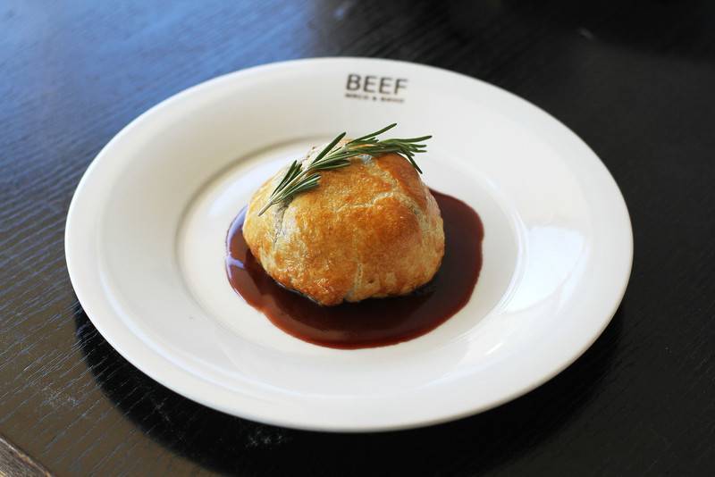 Історія стейку Веллінгтон - філе міньйон, запеченого з грибами в листковому тісті - досить туманна. Деякі стверджують, що страву назвали на честь першого герцога Веллінгтона, Артура Веллеслі, який дуже любив яловичину в тісті з грибами і трюфелями. Нібито стейк зіграв важливу роль для герцога Веллінгтонського у перемозі над самим Наполеоном у битві при Ватерлоо. Або ж назву дано на честь його непромокаючих чобіт велліс, які теж славно послужили герцогу під час війни.