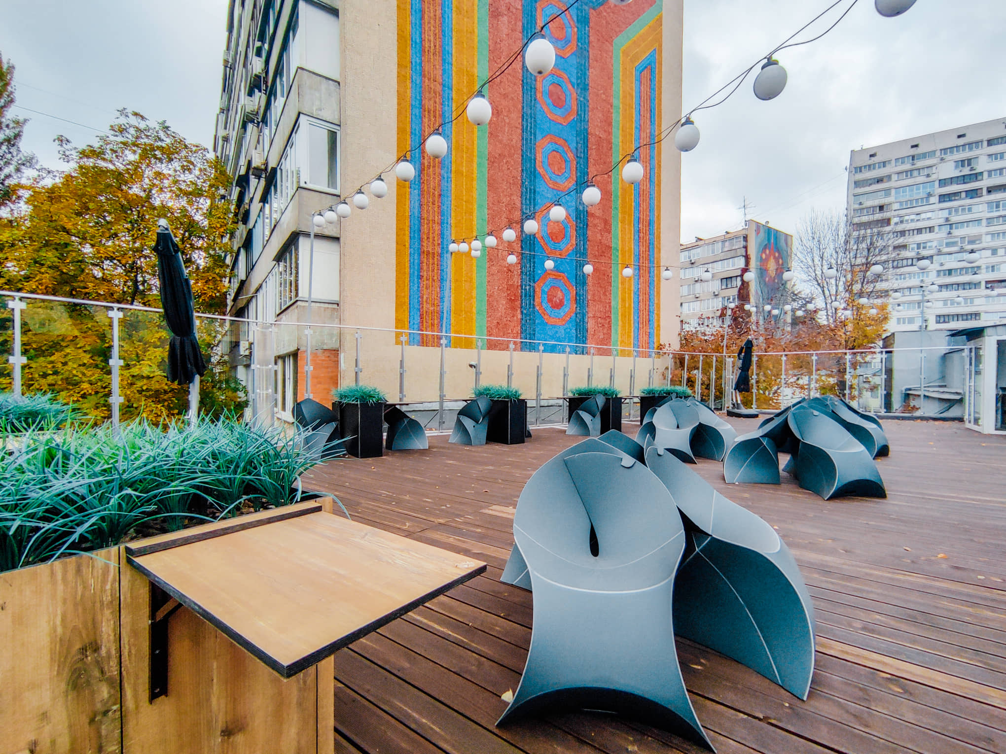 - одна з найцікавіших інновацій оновленого простору – комфортна тераса на даху, яка користується шаленою популярністю у теплі пори року, і де можна не лише з користю провести час, а й зробити класні фоточки для Інстаграму.