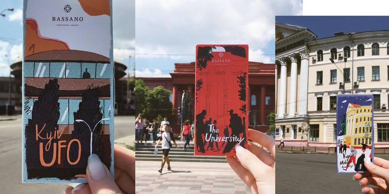 Ілюстрації розробляв Сергій Майдуков, який співпрацював із The Washington Post і Esquire Україна. На обгортках шоколаду зображені КНУ ім. Тараса Шевченка, Києво-Могилянська академія, костел Святого Миколая, «Тарілка» на Либідській і панельний будинок.