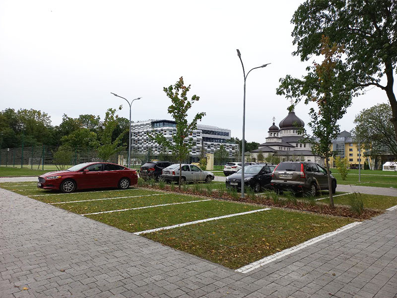 Біля центру імені Андрія Шептицького Українського католицького університету у Львові облаштували екопарковку. Про це повідомив директор компанії TTE Studio Євген Лагутін, яка займалася облаштуванням.