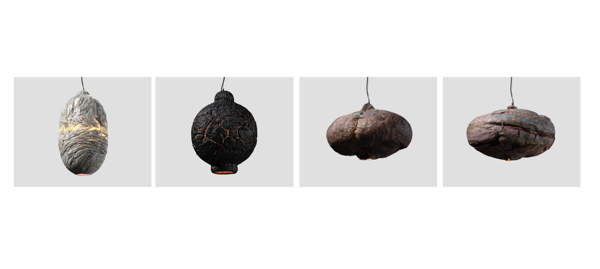 Лампи виконані у натуральній кольорах, що нагадують барви від вибухів – від природного білого, який асоціюється з димом, до коричневого – кольору горіння та руйнації.