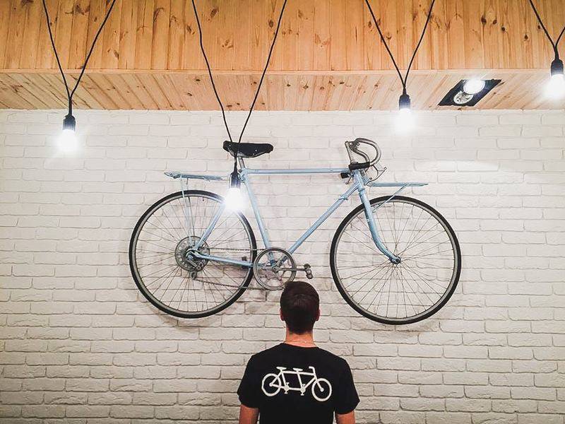 Интерьер легкий и светлый, с интересными деталями. Без велосипедов опять не обошлось.
