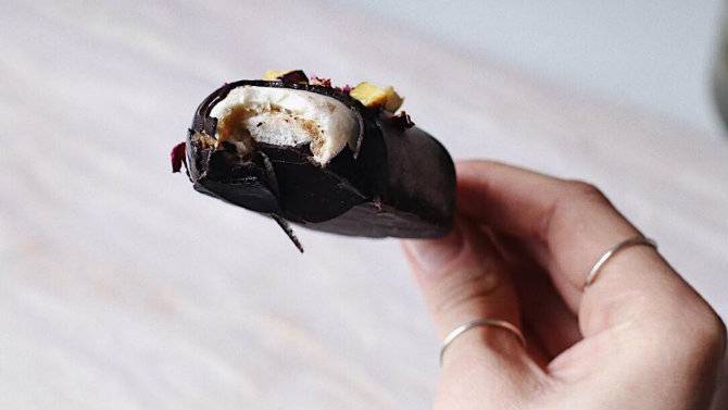 Також це морозиво припаде до душі тим, хто любить красиві та незвичайні десерти: пломбір на паличці прикрашають колотими горіхами, пелюстками квітів і мигдальними пластівцями. Це дуже красиво і просто ідеально для Інстаграма.