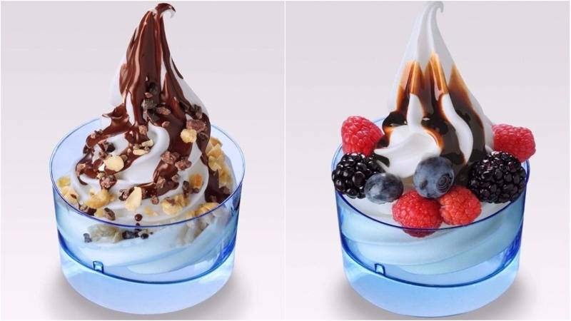 Смак йогурту зазвичай нейтральний, з легкою освіжаючою кислинкою. До нього можна вибрати фрукти, ягоди, горіхи, мюслі, желейні ведмедики, шоколадну посипку, драже M&M's, печиво, подрібнені шоколадні батончики, сиропи, топінги і багато іншого.