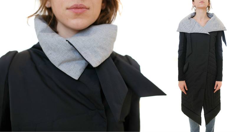 В новой коллекции Возианов представил двухстороннюю куртку и пальто-квадрат в черном и коричневом оттенках.