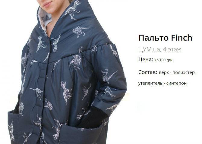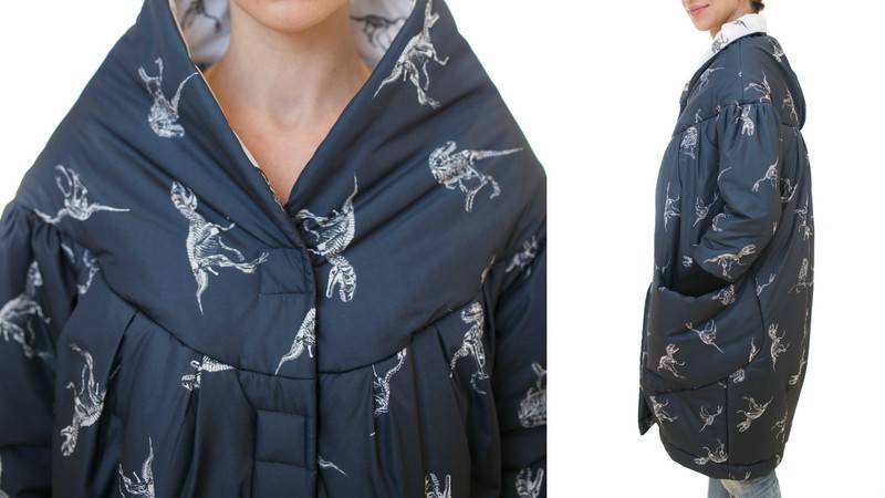 В новой коллекции от Finch можно найти дутое пальто с вязаными рукавами и принтом в виде скелетов динозавров. Можно выбрать вариант на магнитных пуговицах или на липучках.