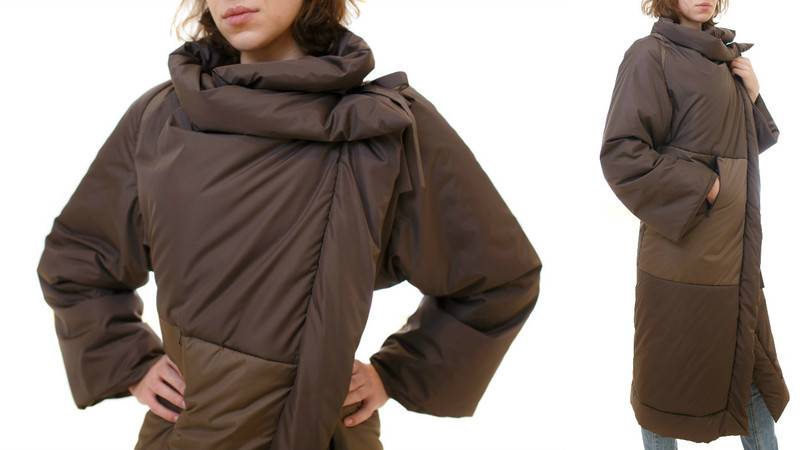 Пальто-квадрат от Vozianov утеплено синтепоном и, как утверждает производитель, выдерживает температуру до минус 20.
