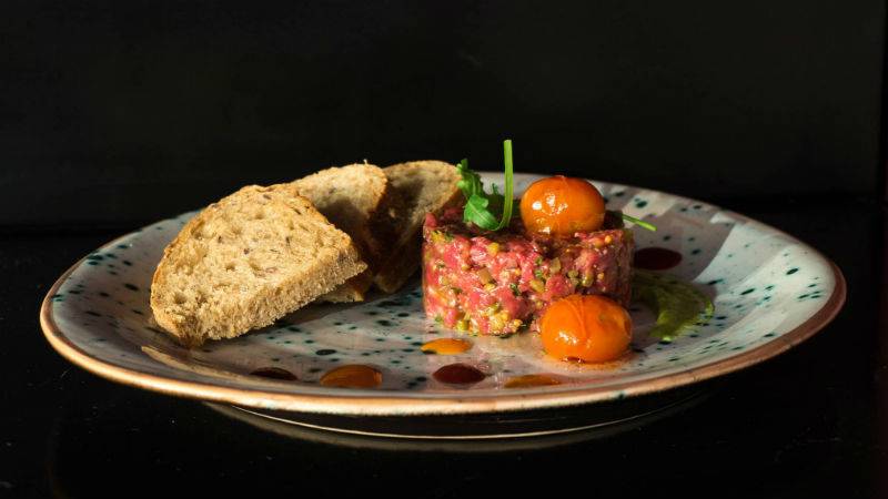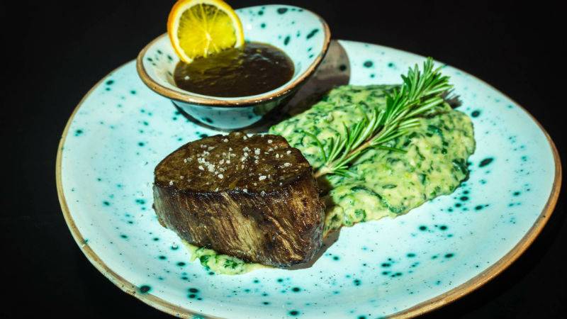 В меню — стейк из вырезки, салат с уткой, паштет с ананасовым джемом, рикотта с пряностями и свежими травами и разнообразные закуски.