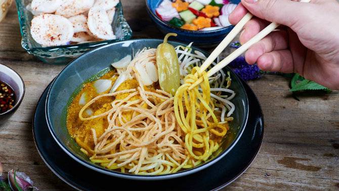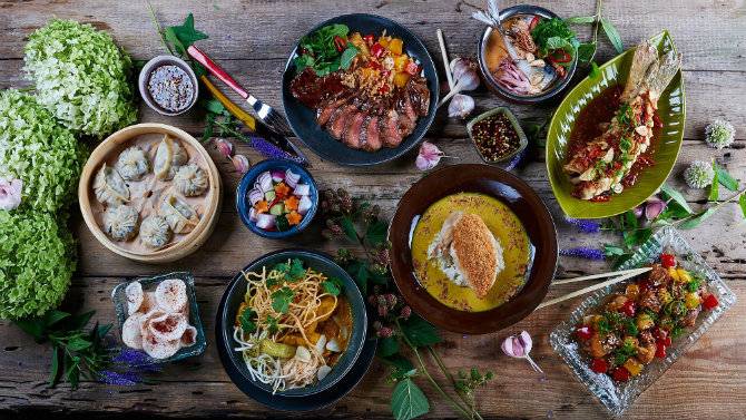 Також тут можна спробувати індійське жовте карі з курячим філе, малайзійське карі з рибою і морепродуктами, курча по-камбоджійськи з кокосом і гунбао - курку в супергострому соусі.