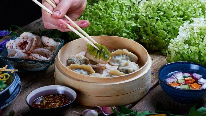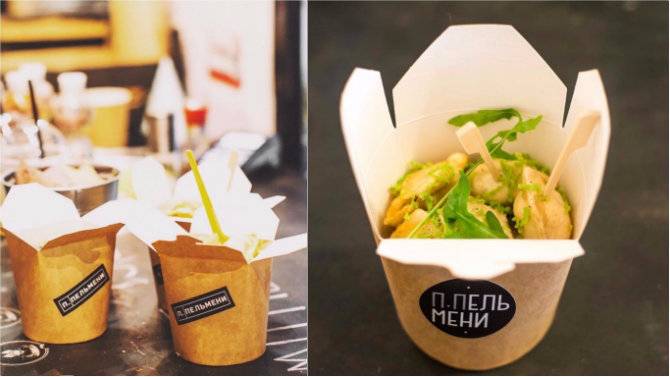 Ще одна «їжа в коробочках» з'явилася минулого місяця на Бессарабці. Але на відміну від звичної локшини і рису, тут у картонних боксах подають пельмені. Варені й смажені. З яловичиною, свининою і куркою, а також з лососем у чорному тісті (з чорнилом каракатиці) і з сиром дорблю у жовтому тесті (з куркумою).