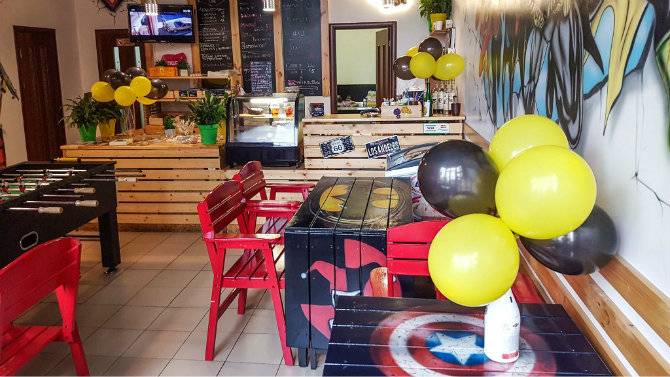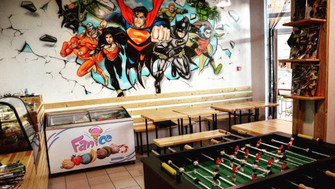 Цей заклад відкрився на радість усім любителям коміксів. Тут готують здорову їжу, випікають печиво у вигляді фігурок супергероїв, а також продають комікси і супергеройську атрибутику: фігурки, подушки, футболки.