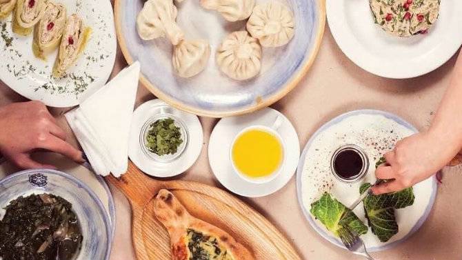 В меню - класика грузинської кухні. Три види хінкалі (свинина-яловичина, баранина, сулугуні з тархуном), хачапурі, кубдарі (закриті коржі з м'ясом), лобіо (квасоля зі спеціями), курча по-мегрельськи, а також чашушулі, чкмерулі, чахохбілі та багато іншого (про те, що означають ці незрозумілі слова, можна прочитати тут).