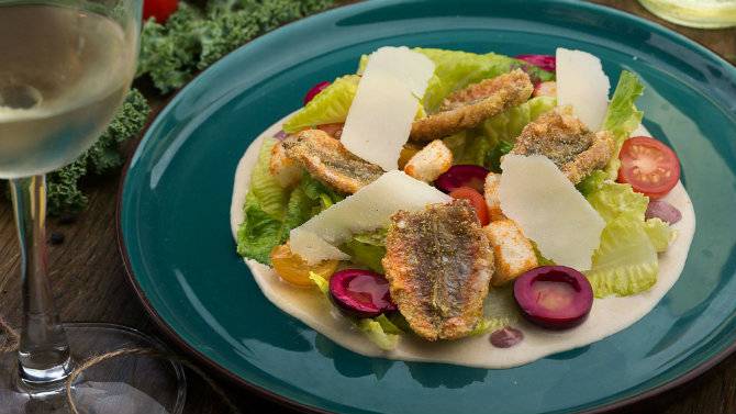 Також тут роблять брускети з хамсою та оселедцем, об'єднують в одному тартарі чорноморські рапани, манго, персик і червону ікру, а в іншому - дунайський оселедець, щучу ікру і грецький йогурт. Класичний «Цезар» тут готують з філе барабульки, а мідії подають із трьома соусами на вибір. Для любителів м'яса тут знайдеться кілька видів стейків, а також томлена в молоці баранина.
