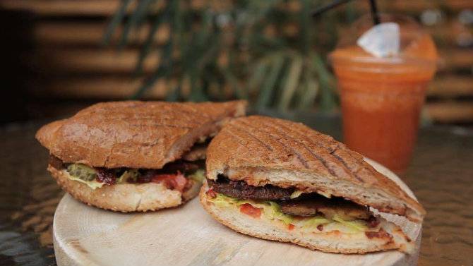 Тут можна спробувати сендвічі з різними добавками, наприклад, з тофу, соєвим битком або сейтаном. Сендвічі подають як у булочці у вигляді бургера, так і в лаваші у вигляді ролу. Також у меню різні овочеві супи, салати та десерти. З напоїв пропонують смузі, лимонади і чай.