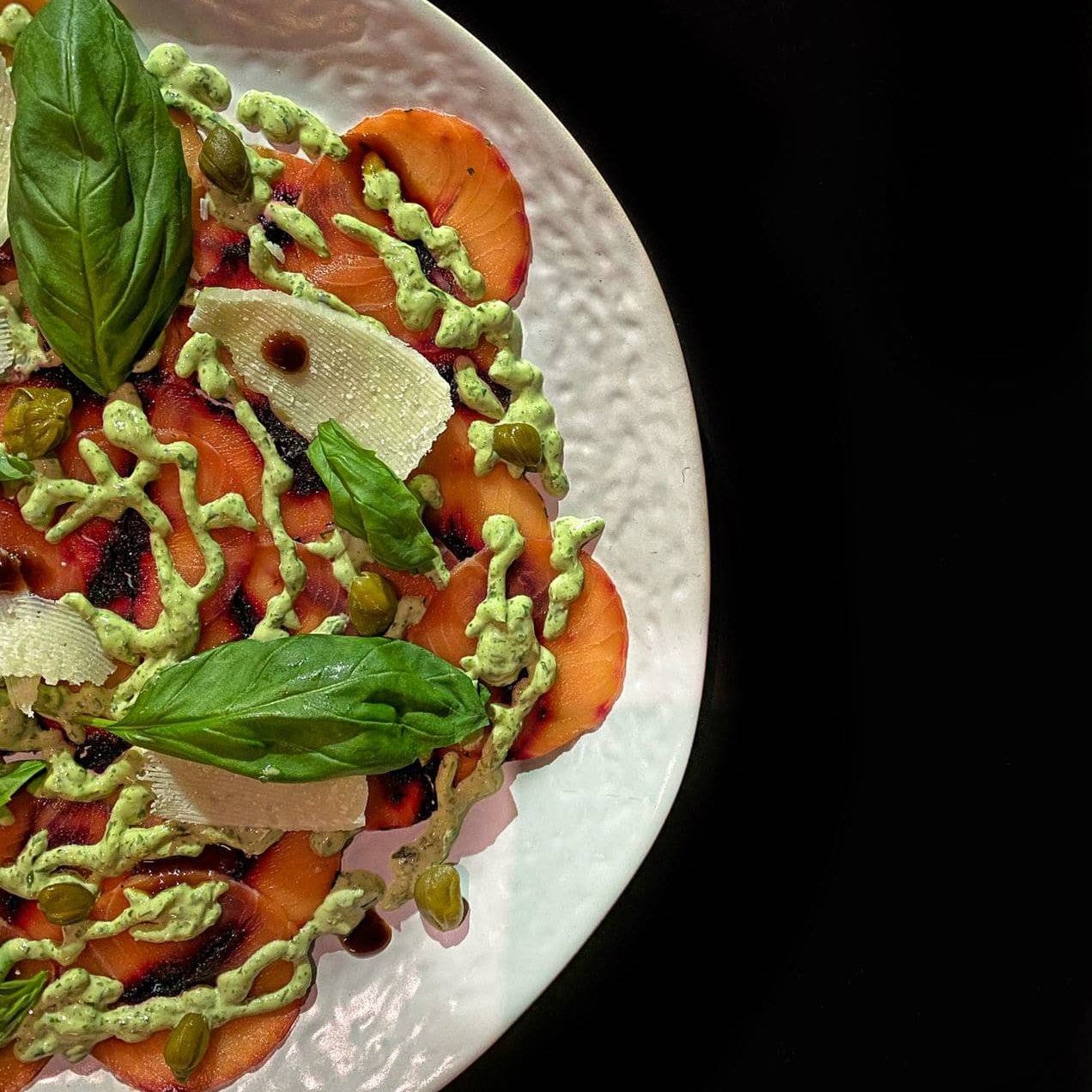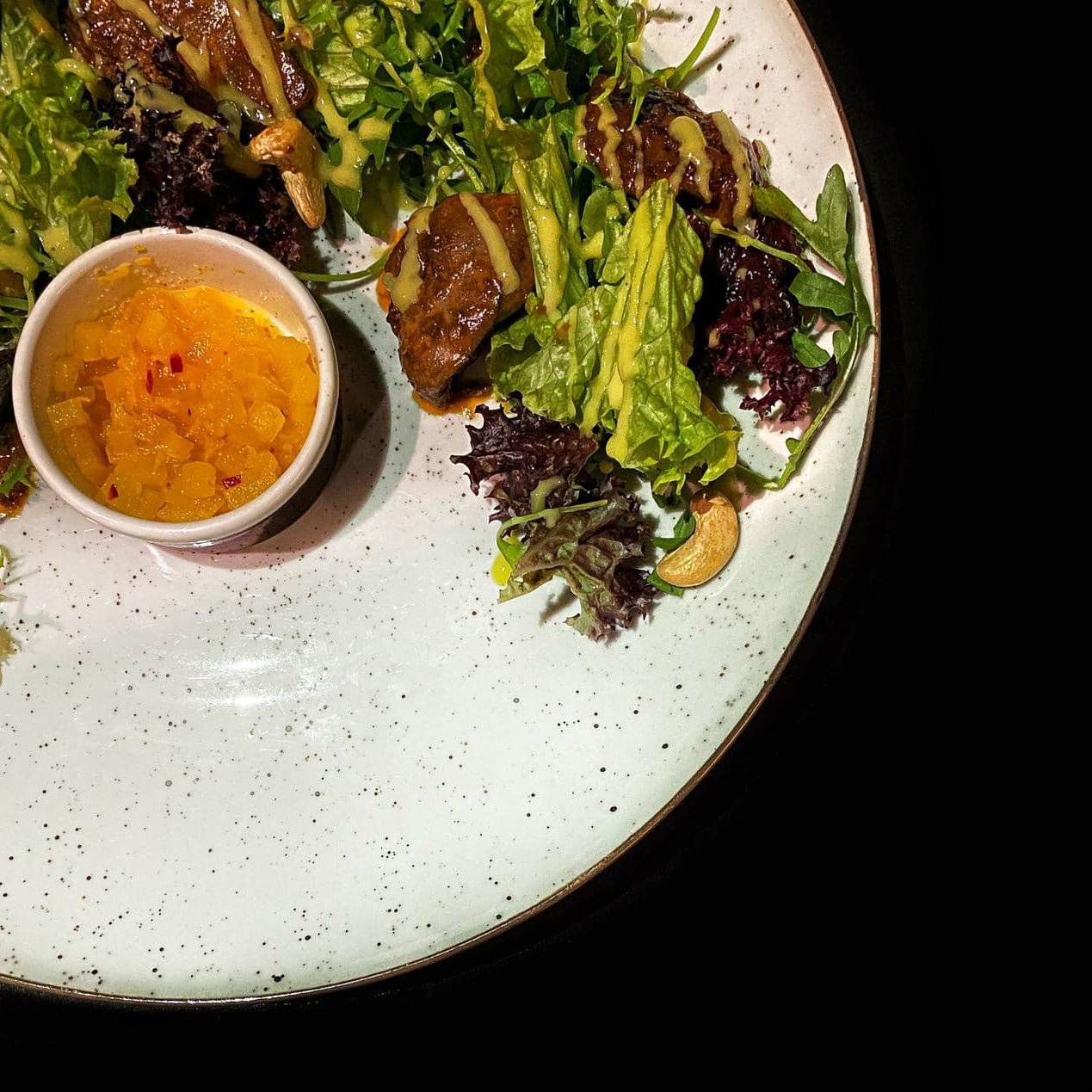 В меню авторські страви від шеф-кухаря Єгора Потапенка. Зокрема, качина ніжка конфі з грушею під соусом «деміглас» і пюре з батату зі смородиновим соусом «пондзу» або каре баранини в зеленій паніровці з м'ятним соусом. Також можна замовити салати, супи, пасту, ризото, піцу і різні закуски.