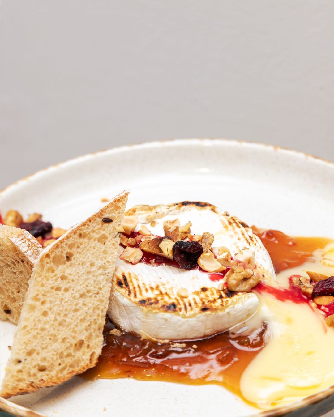 Серед закусок – запечений камамбер з конфітюром, хумус, брускети. У меню також є супи і салати, кілька видів пасти, стейк з лосося, медальйони з яловичини.