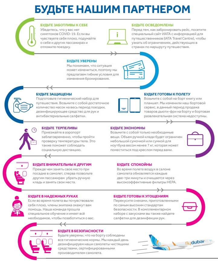 Рейси з Міжнародного аеропорту «Бориспіль» (KBP) до Міжнародного аеропорту Дубая (DXB) будуть виконуватися до трьох разів на тиждень. Під час бронювання квитків пасажирам необхідно ознайомитися з усіма розпорядженнями, які діють за маршрутом їхньою подорожі на спеціальному сайті ІАТА з інформацією для мандрівників (IATA Travel Centre).